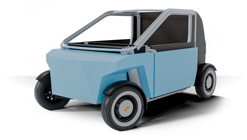Luvly O is a lightweight vehicle designed with sustainability at the core. It's electric and recyclable. Greener than any car. And it looks good too.